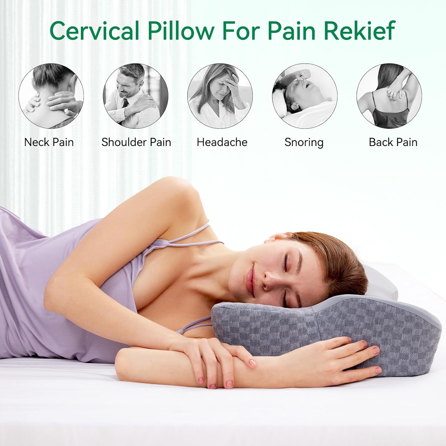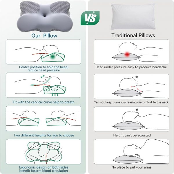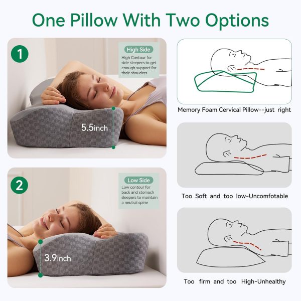 Cervical Pillow for Neck Pain Relief, Contour Memory Foam Neck Pillow for Bed Sleeping, Adjustable Height Double – Sided Cervical Neck Pillow for Side, Back and Stomach Sleepers