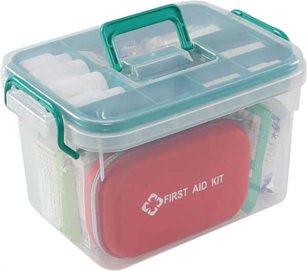 Clear Plastic Medicine First Aid Storage Box, Family Emergency Kit Storage Box, F