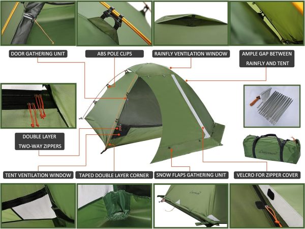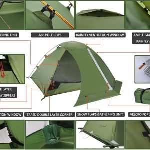 Clostnature Lightweight 2-Person Backpacking Tent – 4 Season Ultralight Waterproof Camping Tent, Large Size Easy Setup Tent for Winter, Cold Weather, Family, Outdoor, Hiking and Mountaineering