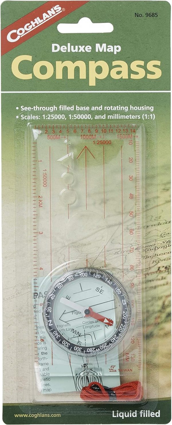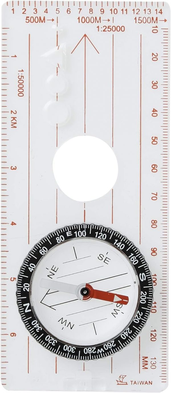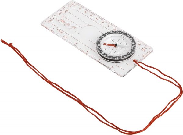 Lightweight, compact map compass for outdoors hiking, camping, orienteering, boating, and scouting