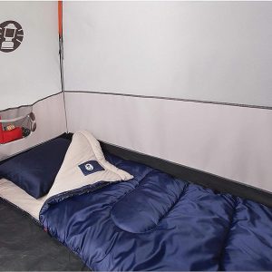 Blocks 90% sunlight so you can sleep past sunrise in the Coleman 4-person tent while staying warm to 20°F in the Coleman sleeping bag.