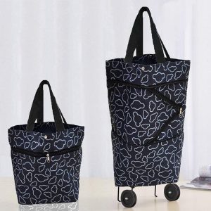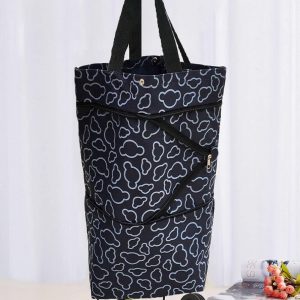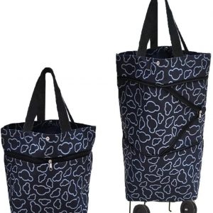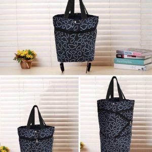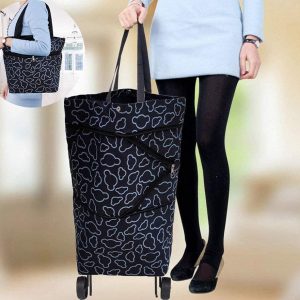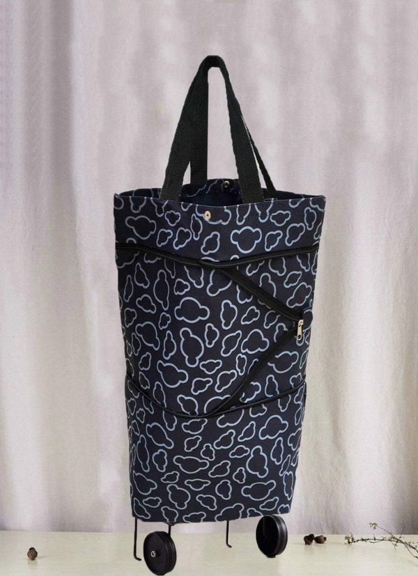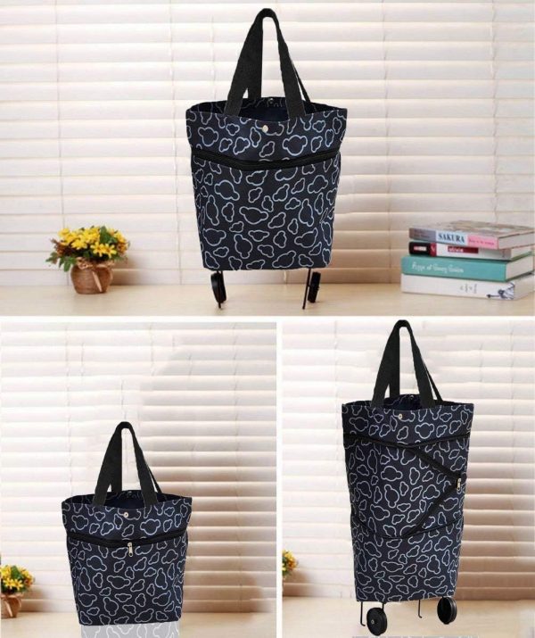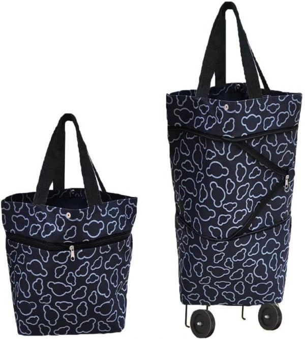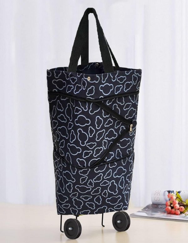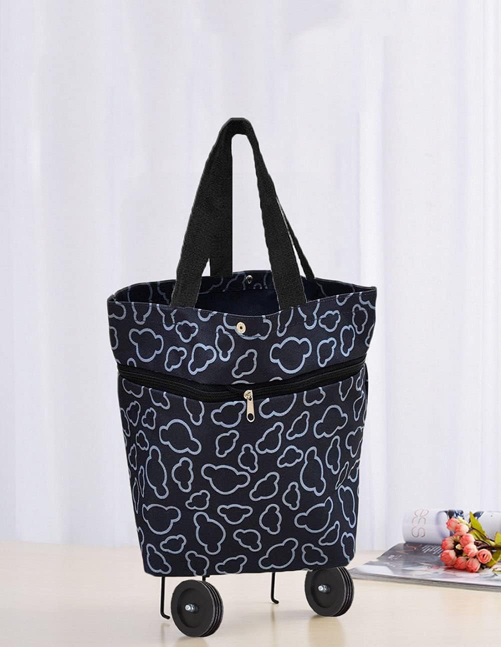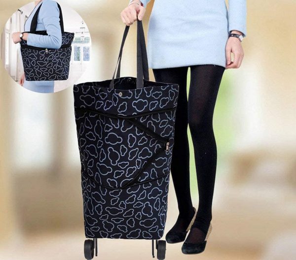Collapsible Foldable Cart Reusable Shopping Grocery Trolley Bag on Wheels(Black)