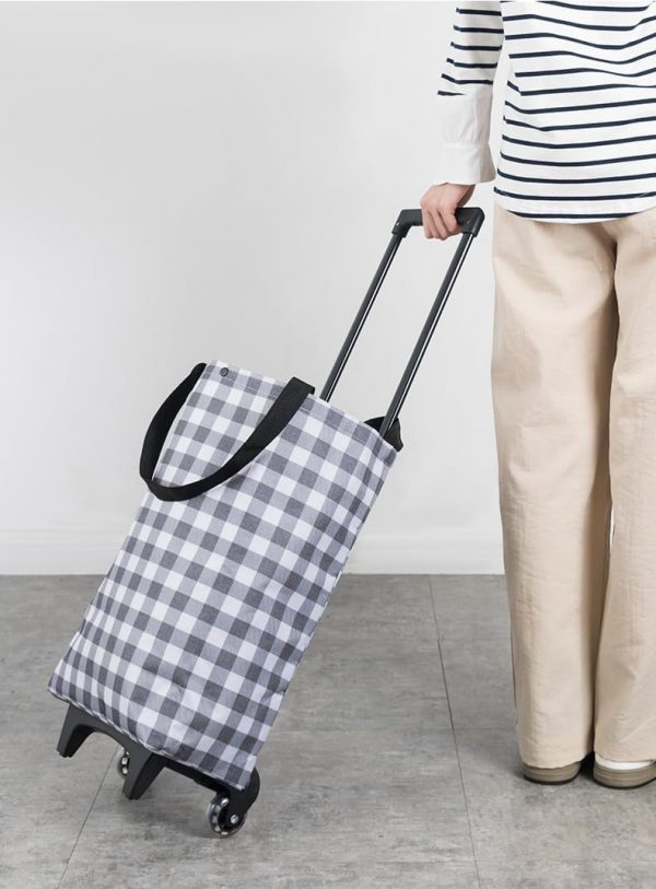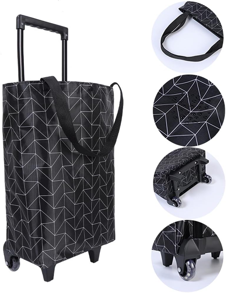 【Rolling Grocery Cart With Retractable Handle】retractable handle for easy transport and storage.Discreet design keeps handle out of sight when not in use
