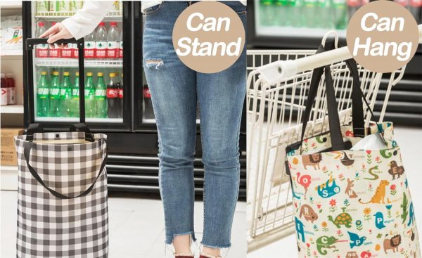 【2 In 1 Foldable Shopping Cart】Easily switch between a compact shopping bag and a practical shopping cart.Convenient and easy to maneuver