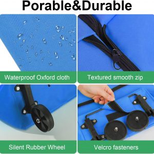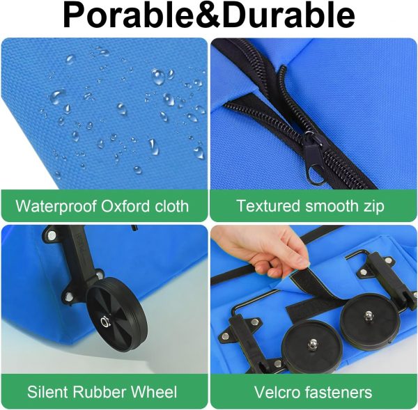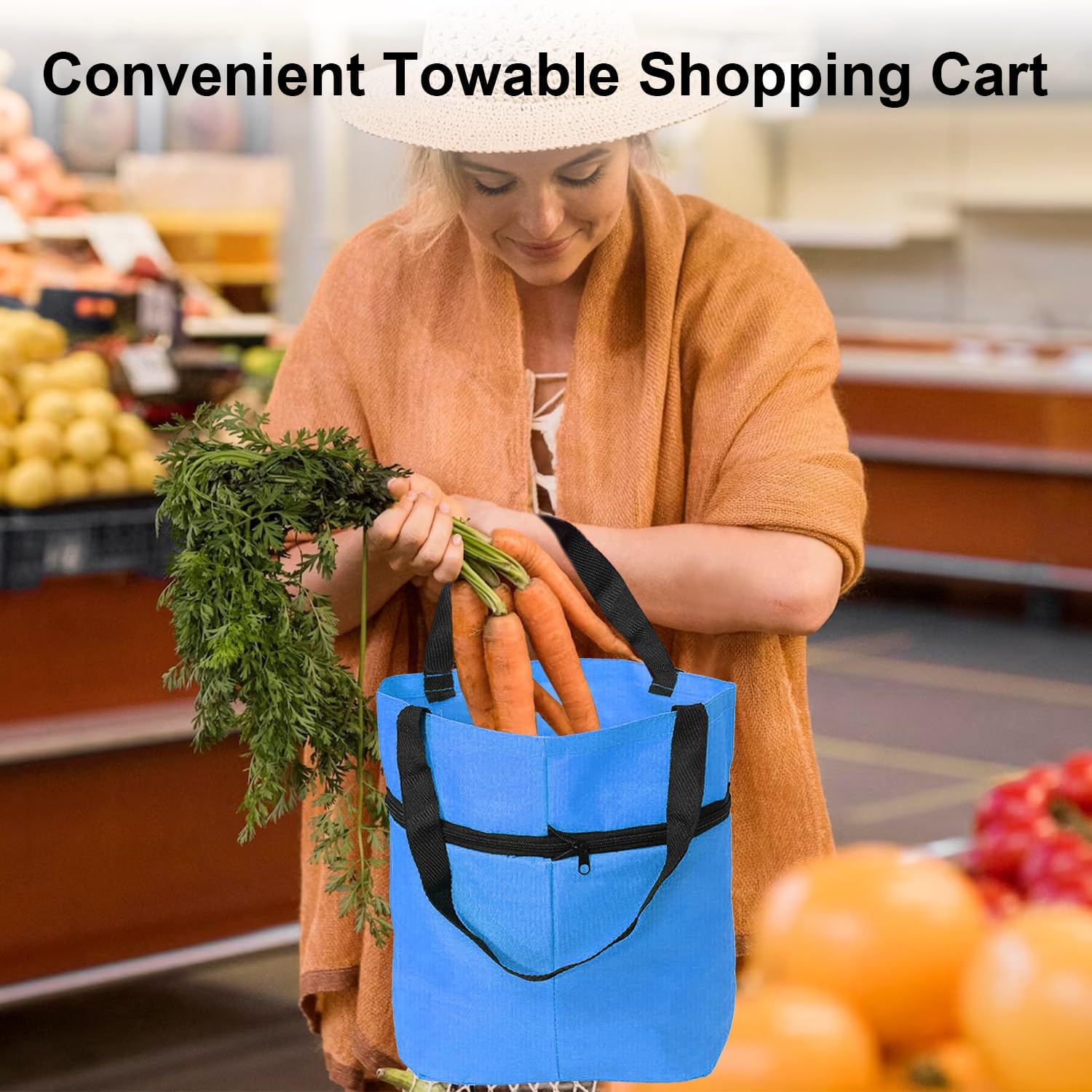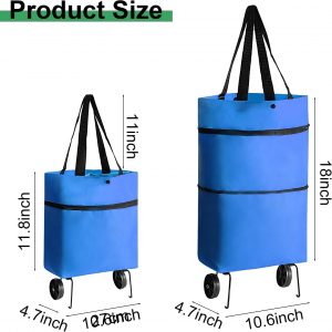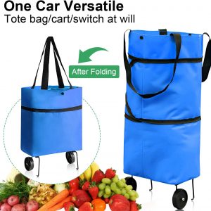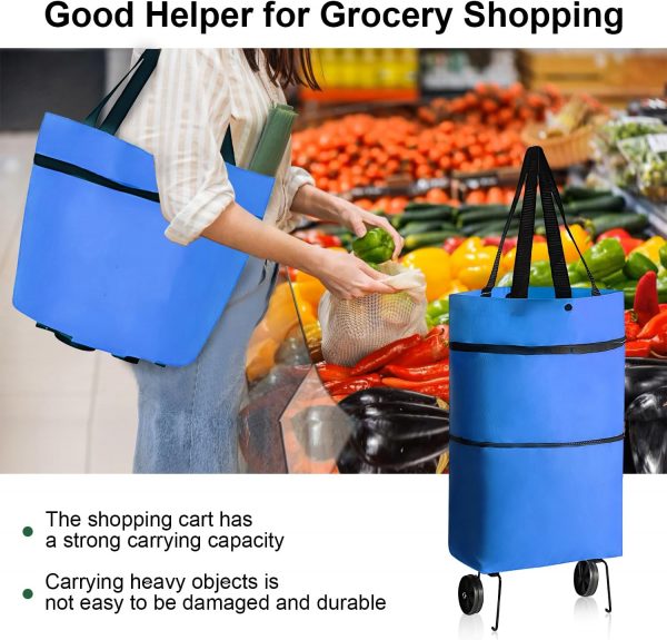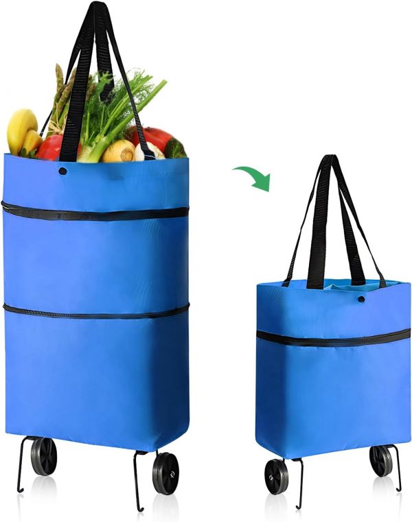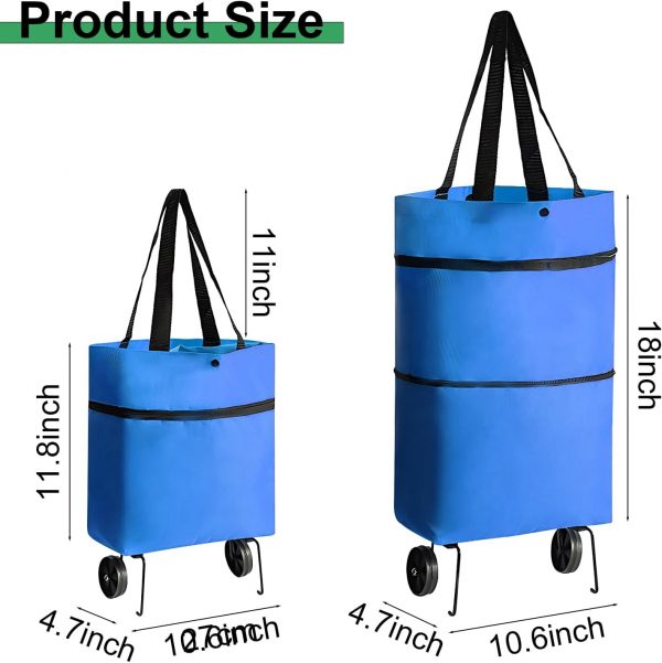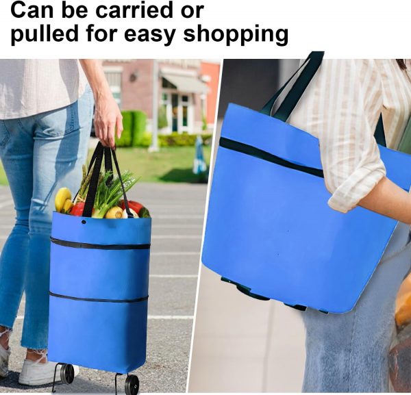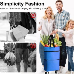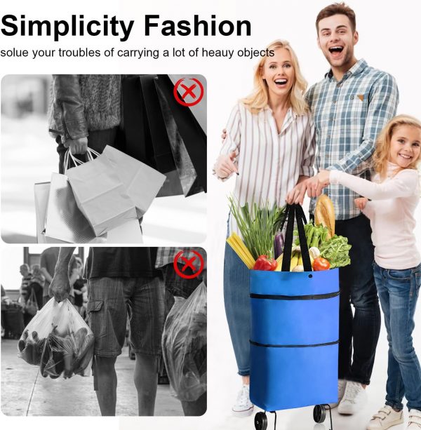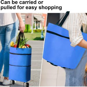 Collapsible Trolley 16 Gallon Capacity Bags Folding Shopping Bag with Wheels Foldable Shopping Cart Reusable Shopping Bags Grocery Bags Shopping Trolley Bag on Wheels (Blue)