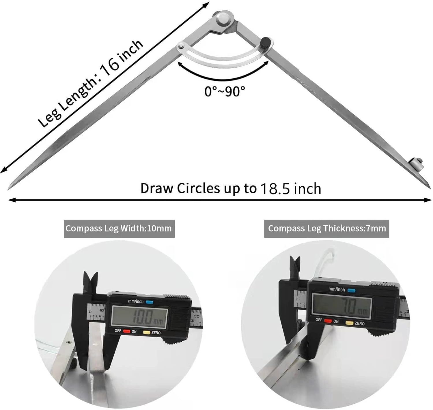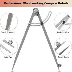 Compass for Geometry, Compass for Woodworking, 16 inch Precision Woodworking Compass with Wing Divider and Pencil Holder, Large Compass for Geometry, Woodworking Compass, Drafting, Drawing Compass