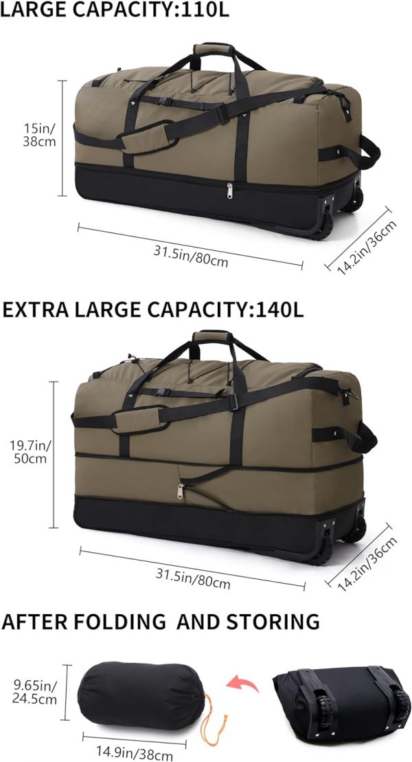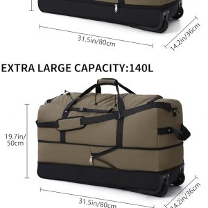 110-140L Travel Wheeled Duffel Luggage for Camping,Kayaking,Rafting,Boating