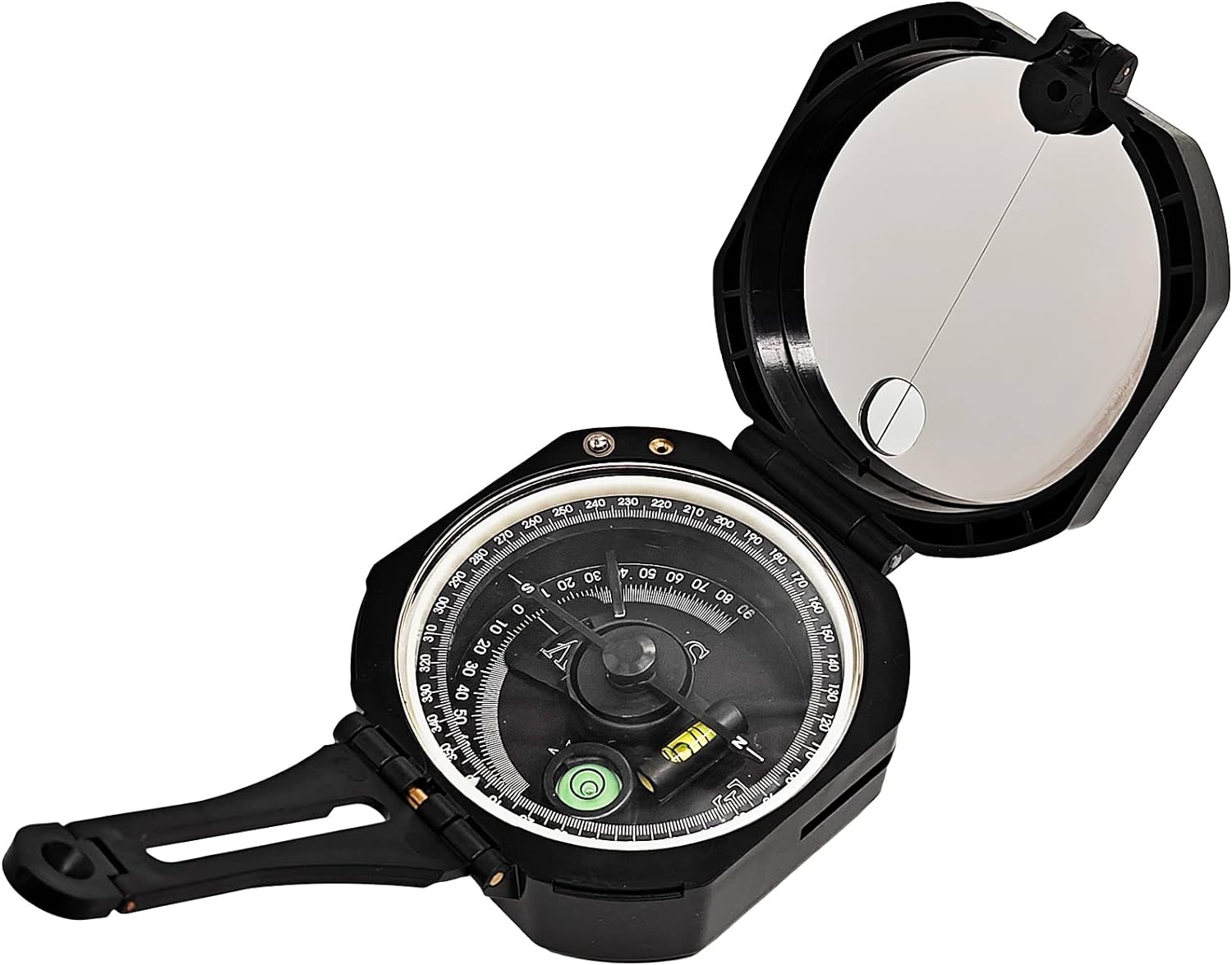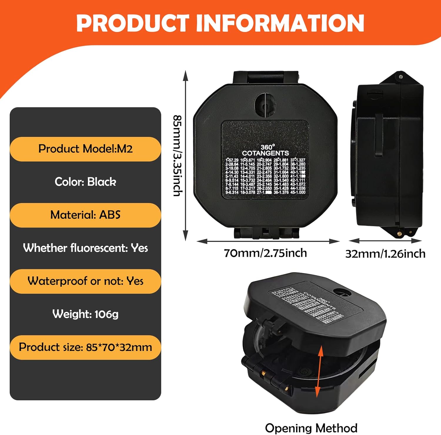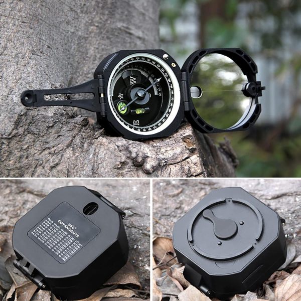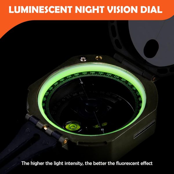 [Wide Functions] The compass with 360° scale dial, Built-in a bubble level, Fold lid, Compass with clinometer, enable to measure height and slopes. Fluorescent design, compass is fluorescent in the dark once absorb enough source from light.[High Precision Military Compass]This military compass rotates very flexibly and the damping oil enhance pointer stability. this compass also have a magnetic declination regulator that can manually correct the magnetic declination to improve accuracy.[High Quality] Made by high quality durable ABS, waterproof and shockproof, durable and suitable for all weather conditions, camping survival gear and equipment for trips,it will partner with you all the way.[PORTABLE]Foldable Compass weight 3.8 ounce and size 3.2×2.8×1.4inches, definitely portable , compact enough to be fastened on your belt or rucksack without compromising your actions.[Gifts For Kids]Professional compass is stable and fearless in harsh environments, suitable for driving, boating, camping, hiking, exploring, hunting and so on outdoor activities, a great gift for kids, scouts, backpackers and women!