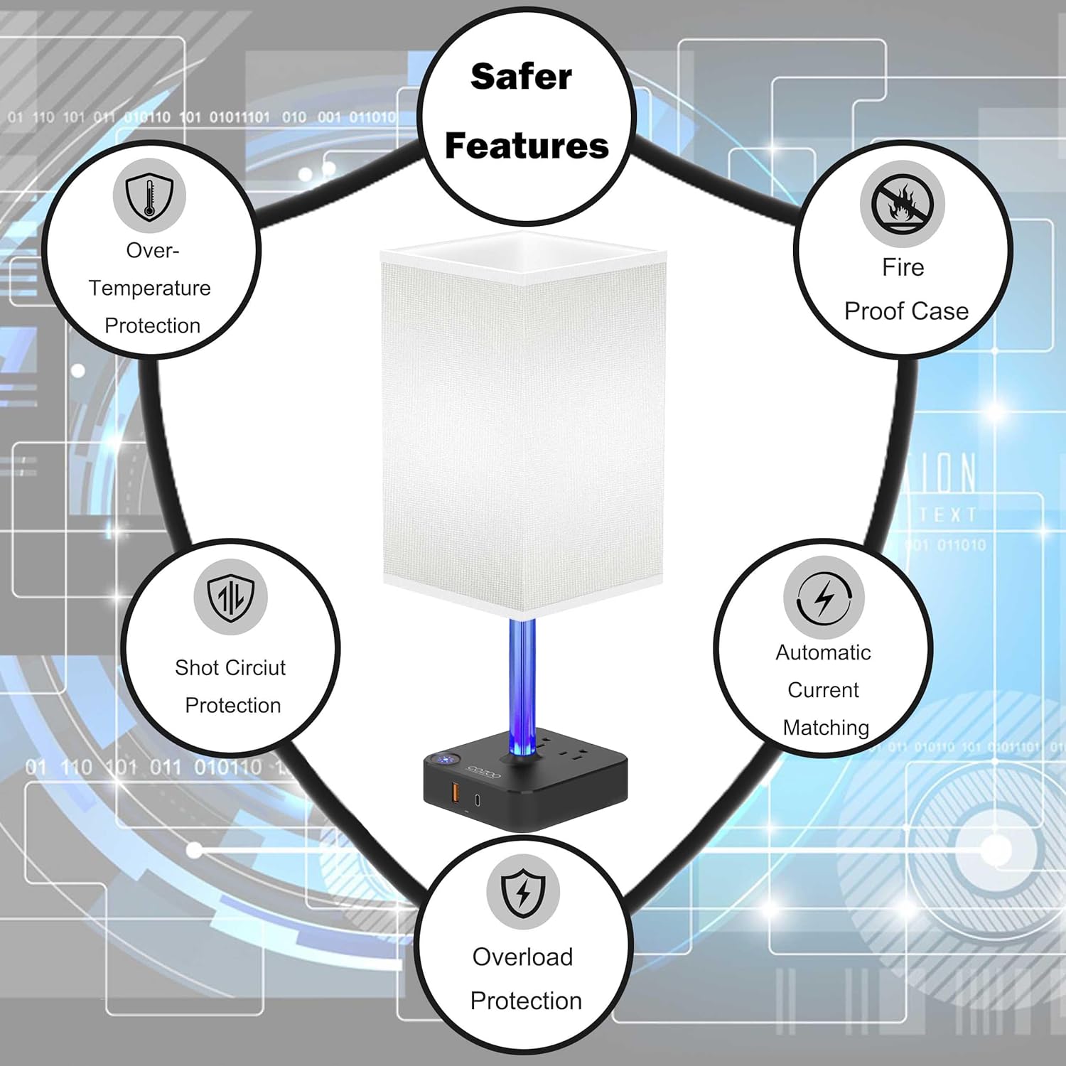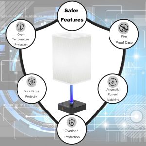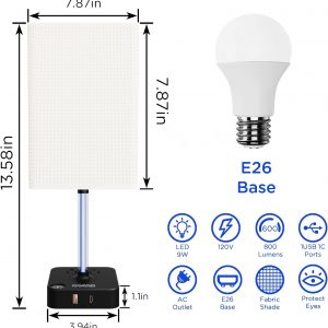 【2 USB A+C Ports & 2 AC Outlets】The base of this decorative and unique desk and table bedside lamp contains 2 USB port and 2 outlets power strip so that you can charge your mobile phones, tablets, laptops, and other electronic devices. The USB port functions regardless of whether the lamp is on or off. It will look beautiful in any contemporary home or office.