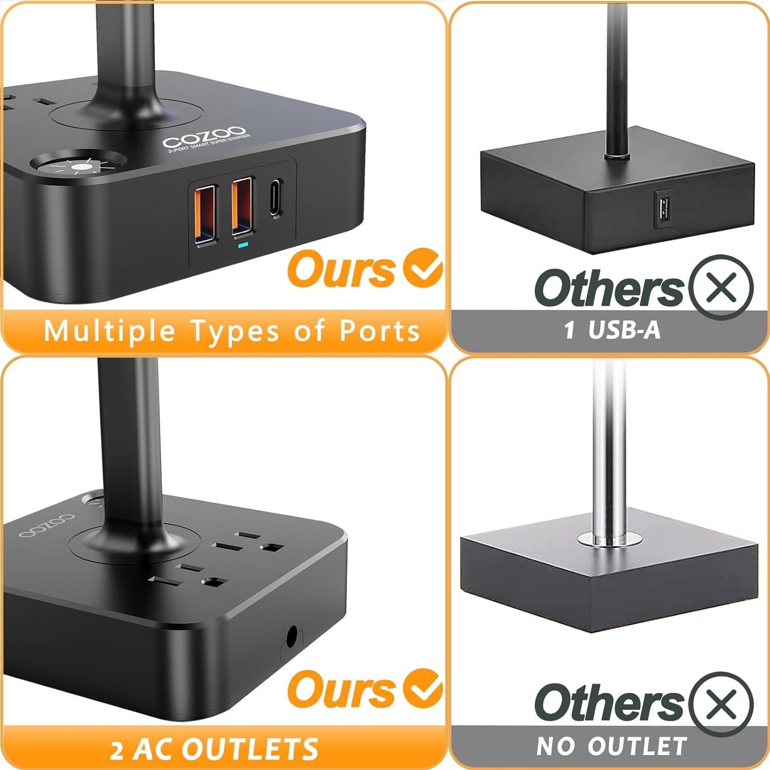 3-way Dimmable provides you more choice for different occasion needs.COZOO lamp equipped with 3 USB A+C Charging hub and 2 AC outlets, providing easy Charge to your Devices.Touch control design saves you from the trouble of finding the switch button or pull chain in the middle of the night.