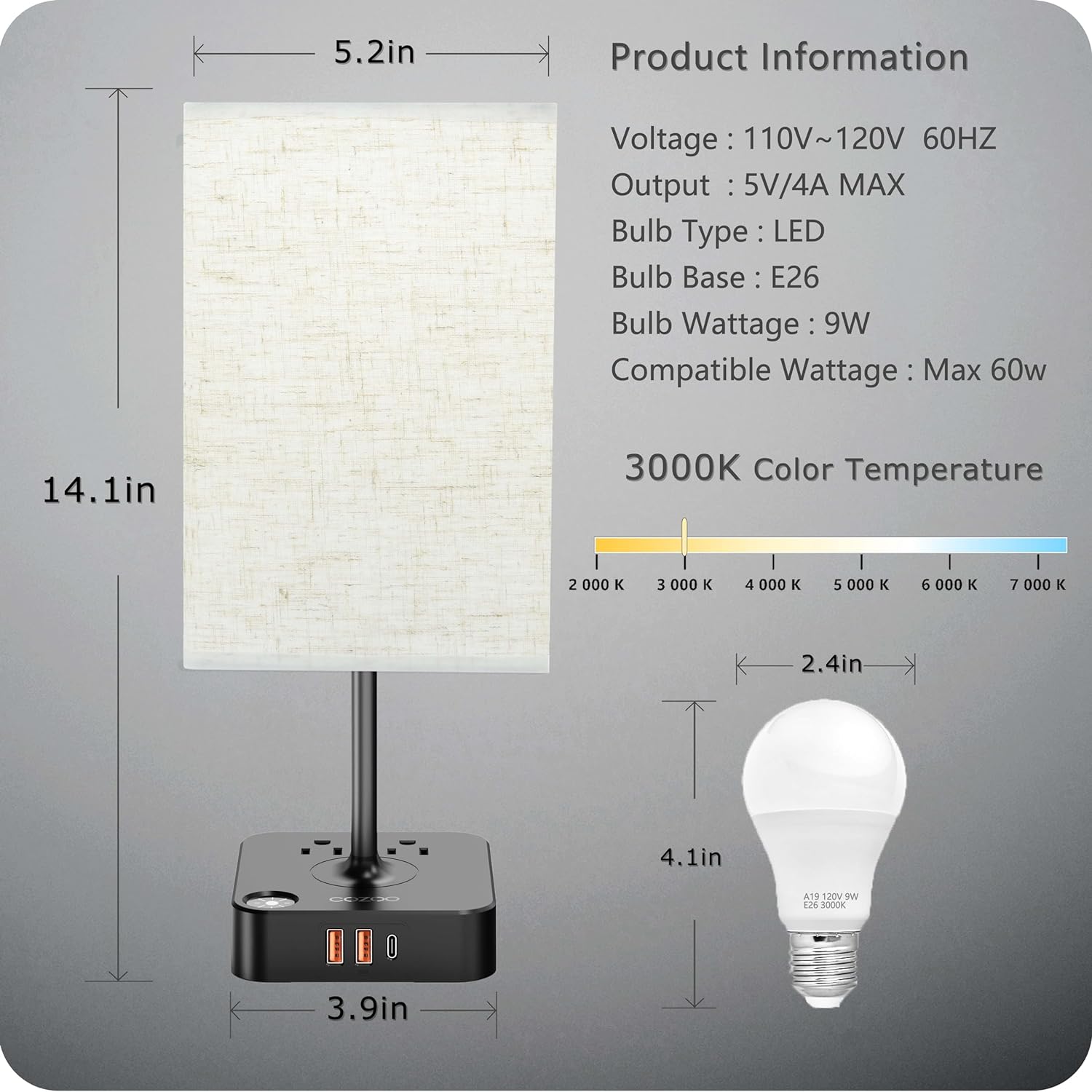 Widely Application & Suitable Gifts: COZOO minimalist table lamp with black metal base and a stylish linen fabric shade. It could decor your bedroom, living room, guest room. Its additional functions will greatly improve your space utilization.We are commited to providing our customers with an exceptional purchasing experience. We value all suggestions in order to improve our products and services. If you have any problems while using our dimmable nightstand lamps, please feel freely contact us.