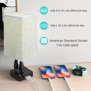 3 USB A+C Charging Ports 2 AC Outlets : The base of this decorative and unique desk and table bedside lamp contains 3 USB port and 2 outlets power strip so that you can charge your mobile phones, tablets, laptops, and other electronic devices. The USB port functions regardless of whether the lamp is on or off. It will look beautiful in any contemporary home or office.