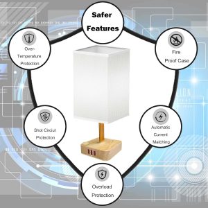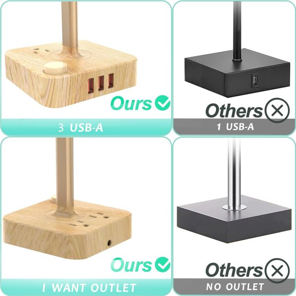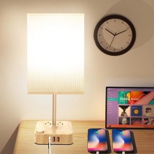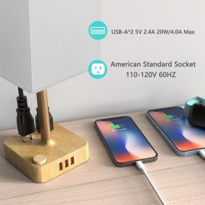 3 USB Ports 2 AC Outlets:The base of this decorative and unique desk and table bedside lamp contains 3 USB port and 2 outlets power strip so that you can charge your mobile phones, tablets, laptops, and other electronic devices. The USB port functions regardless of whether the lamp is on or off. It will look beautiful in any contemporary home or office.