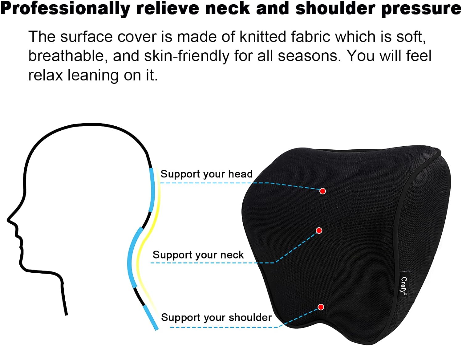 NECK PAIN RELIEF: Comfort your neck and shoulder while driving long time or long distance which can support your cervical spine in different directions, car seat neck pillow with 100% pure memory foam provides a great support for your cervical spine and head, help you maintain the correct posture in driving, and make your driving safer and reduce fatigue