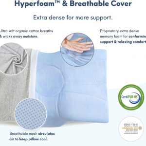 ✔【HEAD & NECK SUPPORT】 Made with proprietary HYPERFOAM™, a gel-infused, dynamic rebounding memory foam, which conforms to the natural curve of your head & neck and provide relieving neck support to ensure comfortable cervical spine alignment.