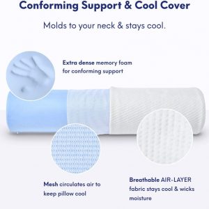 Cushion Lab Neck Roll Pillow for Neck Relief – Extra Dense Memory Foam Round Cylinder Bolster for Cervical Support, Spondylosis, Neck Pain Relief, & Spine Lumbar Traction – Washable Cover & Travel Bag