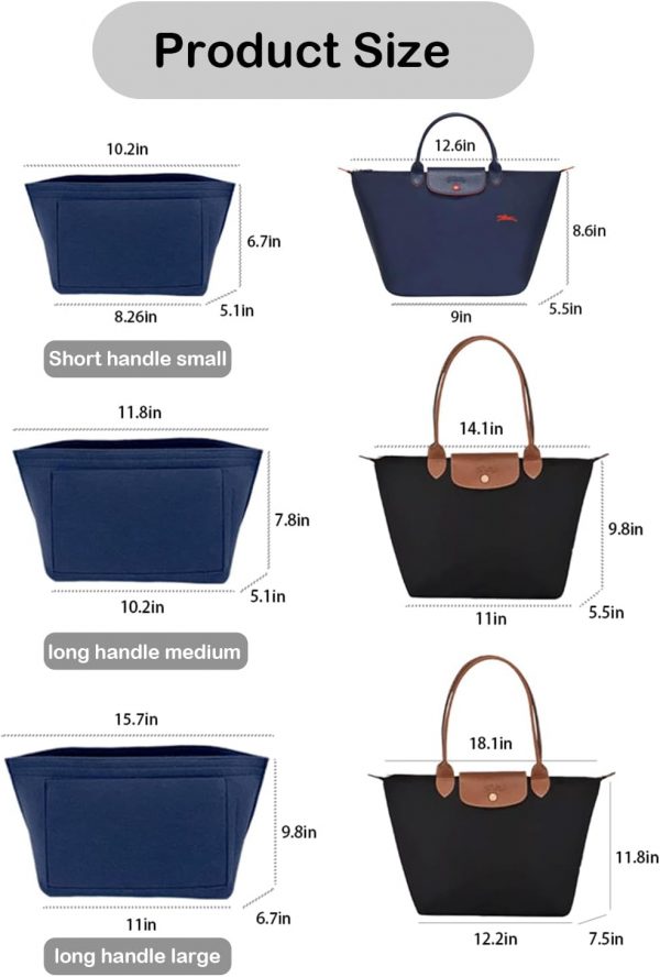 Size options: Wallet insert comes in 3 sizes, S=8.26×5.1×6.7 inches, M=10.2×5.1×7.8 inches, L=11×6.7×5.9 inches. Please choose the size that suits your bag when purchasing.