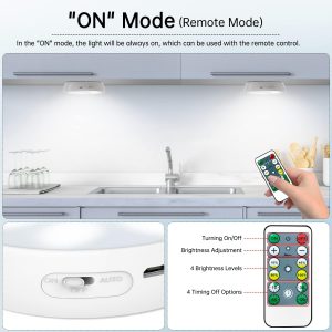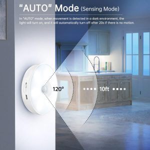 💡Excellent Sensor Sensitivity💡 In “AUTO” Sensing Mode (Only work in DARK condition), the cupboard light will turn on in one second when detecting motion within 10 feet/120° and turn off automatically after about 20 seconds when no motion is detected. You no longer need to fumble in the dark to turn on the lights!