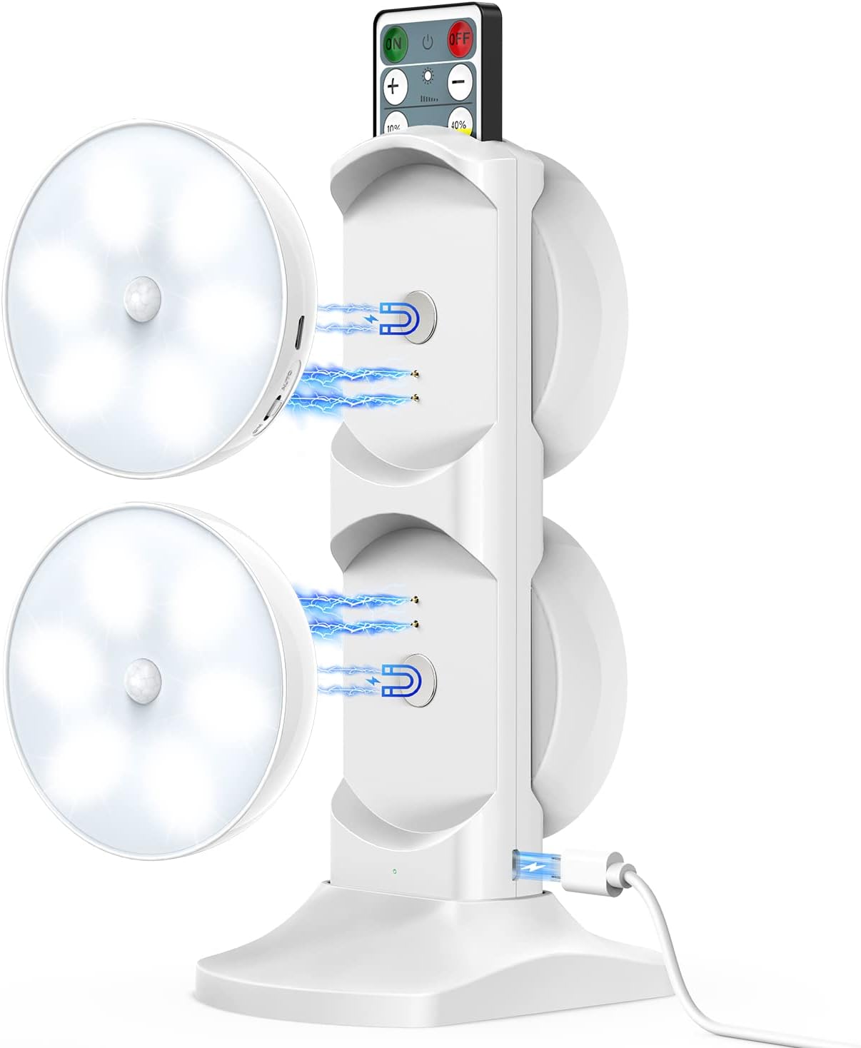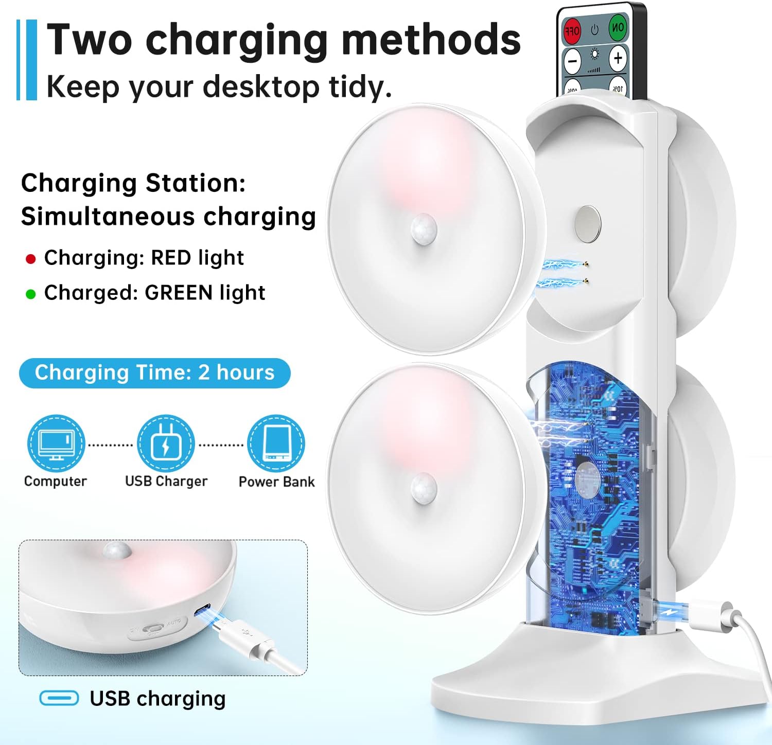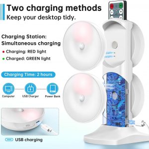 💡Convenient Charging Station💡 Upgraded sensor light, unique charging station design on the market. It can charge 4 led lights at the same time. The rechargeable light can also be separately connected to USB for charging. The non-slip bottom makes the charging station stand stable and won’t slip, keeping the desktop tidy and decent, saving space.