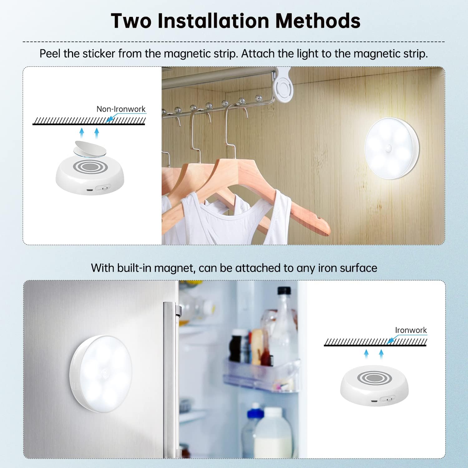 💡Quick Installation and Disassembly💡The wireless light can be adsorbed directly on any iron product with the built-in magnet, or attached to any clean and flat surface with the adhesive strip. This hallway light uses a high-quality aluminum alloy shell with better heat dissipation performance. It can be installed in attics, basements, closets, cabinets, drawers, lockers, bookshelves, etc, and can also be used as an emergency flashlight use.