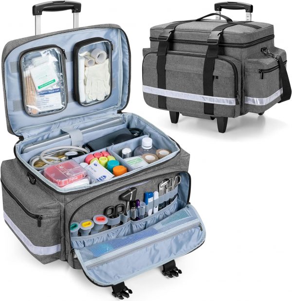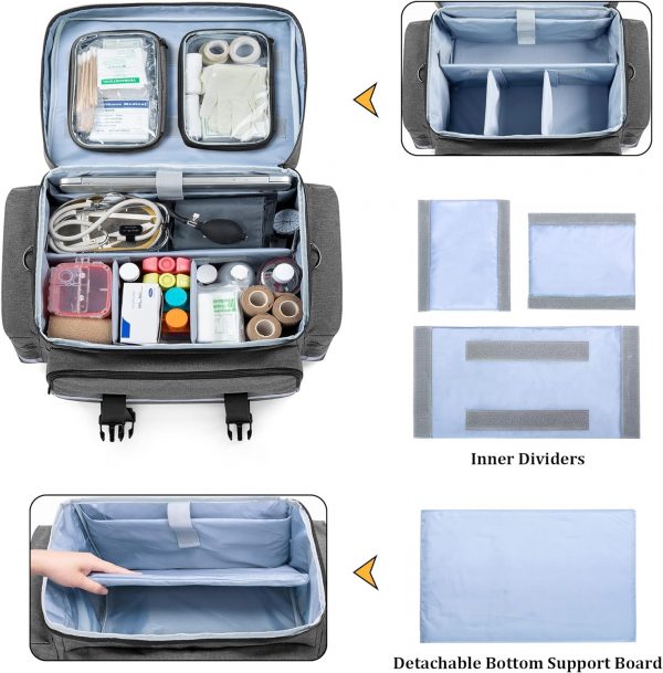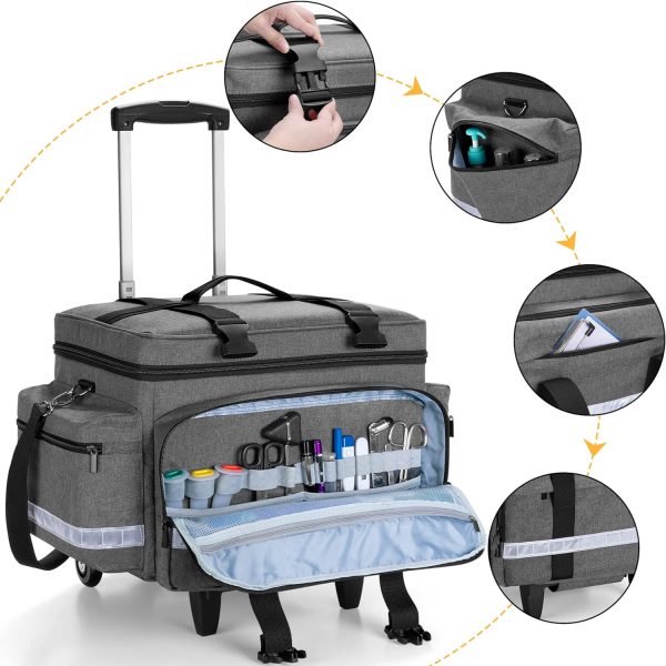 PORTABLE TO CARRY: Our nurse rolling bag not only comes with top hand and shoulder strap, but also with detachable trolley, you can release your shoulders and provide a comfortable transport experience.