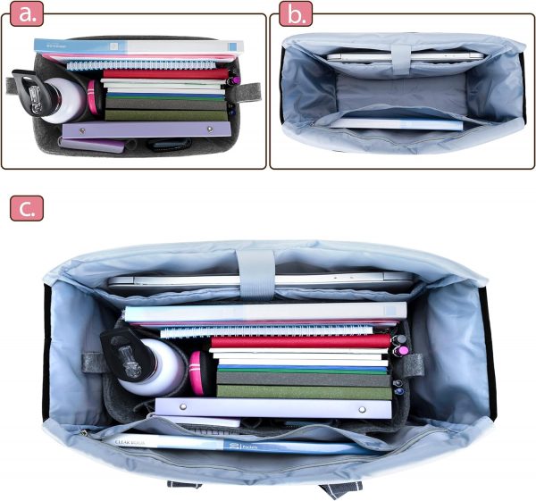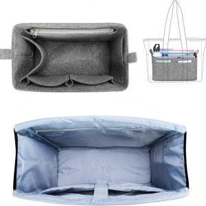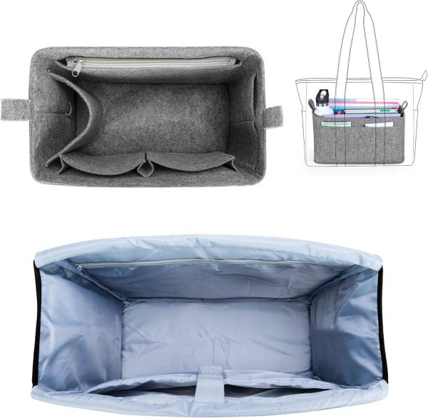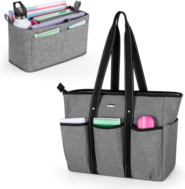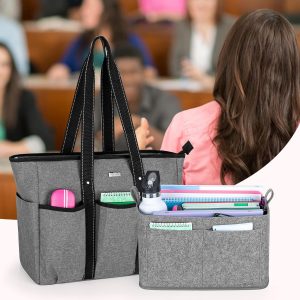 WELL ORGANIZED: Come with 1 Teacher Tote Bag and 1 Insert Bag. This insert organizer is made of felt fabric. Multiple Pockets of this insert bag keep phones, charger, teaching appliance and more in one place. Dual handles enable you to shift the bag organizer easily.