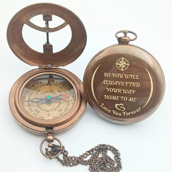 DAYOL’X So You Can Always Find Your Way Back to Me – Personalized Sundial Compass – Luxury Gift – Anniversary Sundial Compass – Brass Compass Personalised Gifts for Men with Engraved Message