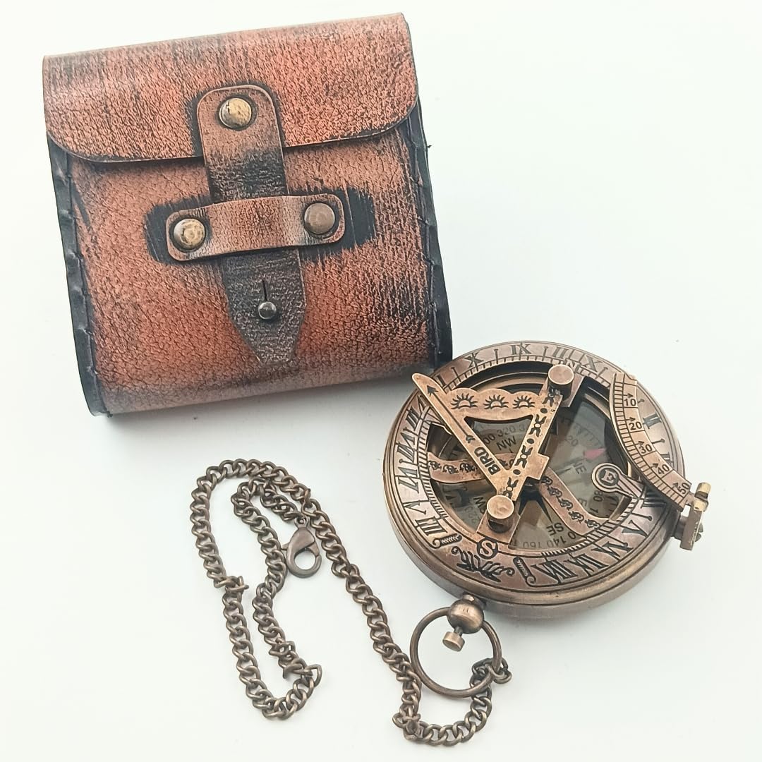 Antique Brass Sundial Compass: High-quality brass with a 3-inch diameter and antique finish. Ideal keepsake for antique decor and a stylish copper gift for men