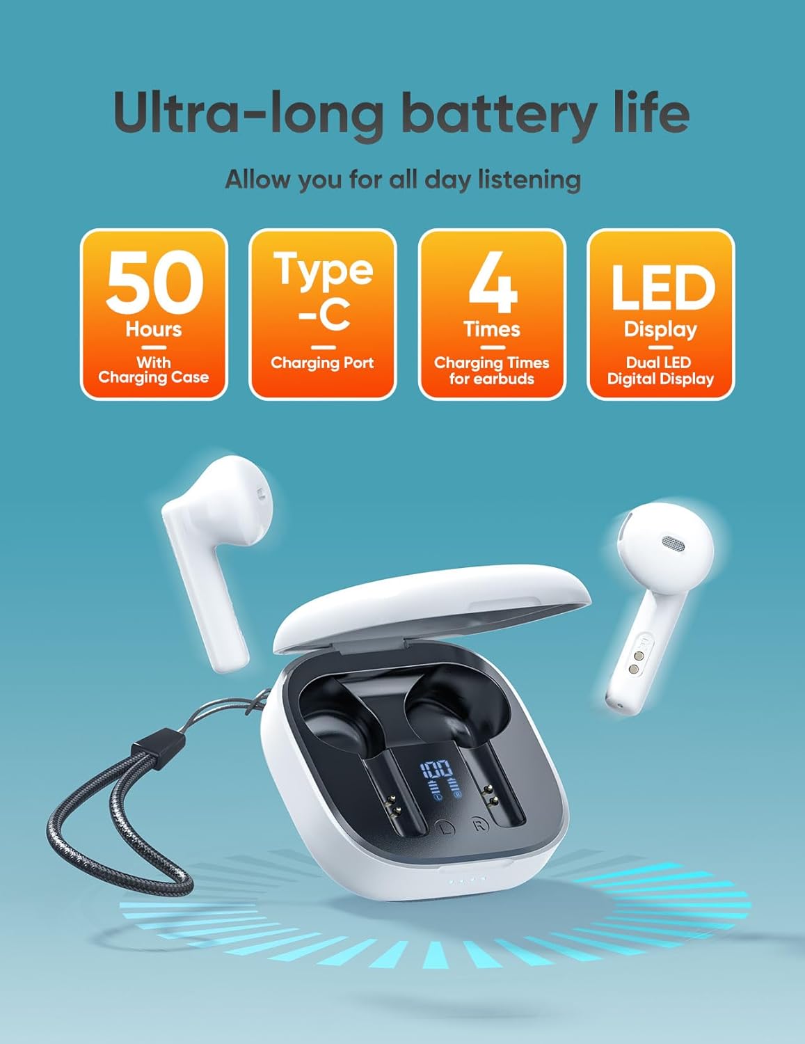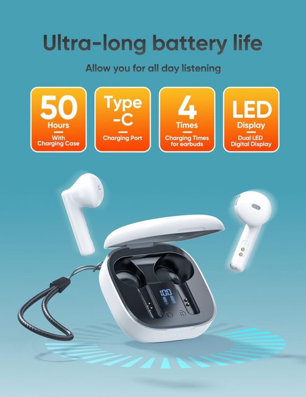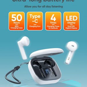 👂【50 Hours Playtime & LED Display】: These bluetooth earbuds provide up to 4-5 hours of high-quality sound output on a single 1.5-hour charge, and the included charging case provides an additional 4 charges, giving a total playtime of 50 hours. Dual LED power display of the case allows you to easily monitor the power level of both the wireless ear buds and the charging case so you can know when to charge them. You’ll never have to worry about battery life even on long trips.