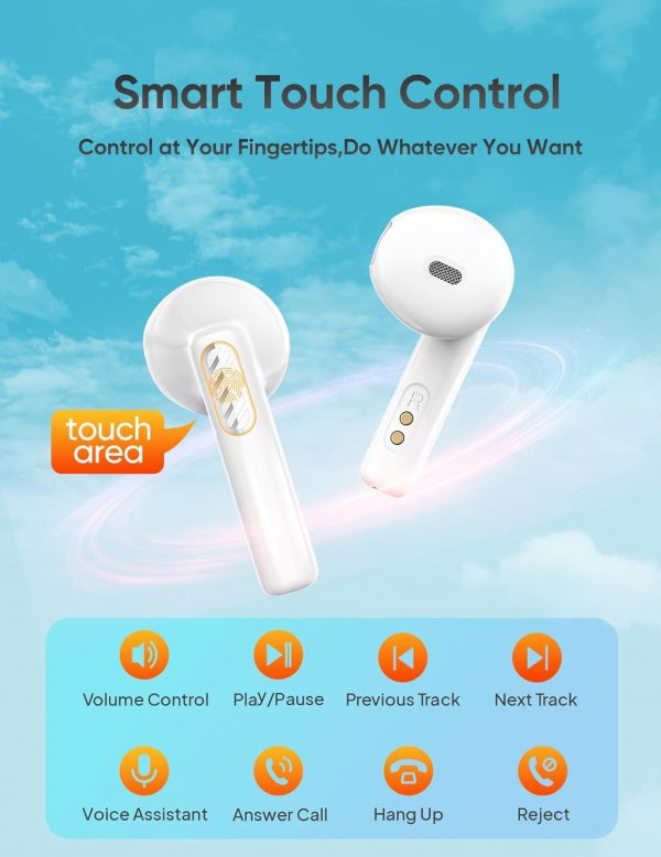 👂【Smart Touch Control】: Wireless earbuds bluetooth are equipped with sensitive touch control panels on both the left and right earbuds, the unique touch control greatly reduces the probability of you touching the earphone by mistake. And easily control volume, up and down songs, pause/play, answer/reject calls, and call Assistant.