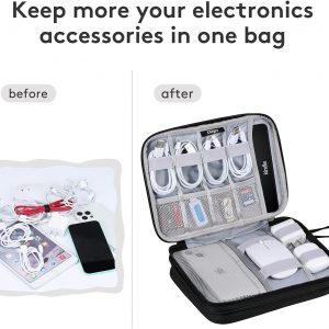 This DDgro Electronics Travel Organizer is so convenient for travel and office working. This Cables pouch helps to keep your essential cable, charger, etc organized, much better than dig into your bag all the time. This large electronic organizer case with plenty of storage mesh pockets designed to store iPad mini, certificates, passports, driver’s license, electronic gadgets (such as power bank, external hard drive, SD memory card, cables, earphone, connector adapter). Convenient for all the cords and adaptors needed for trip all in one place. You will find it very practical & useful for your daily life or Travel.