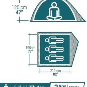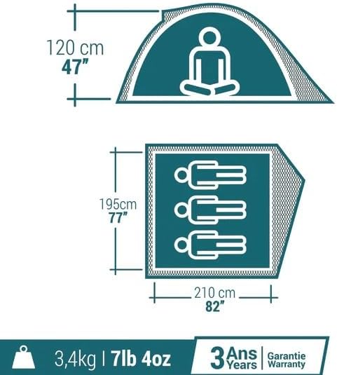 Decathlon Quechua MH100, Outdoor, Waterproof Family Camping Tent, 3 Person