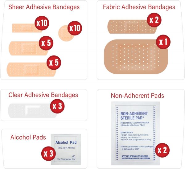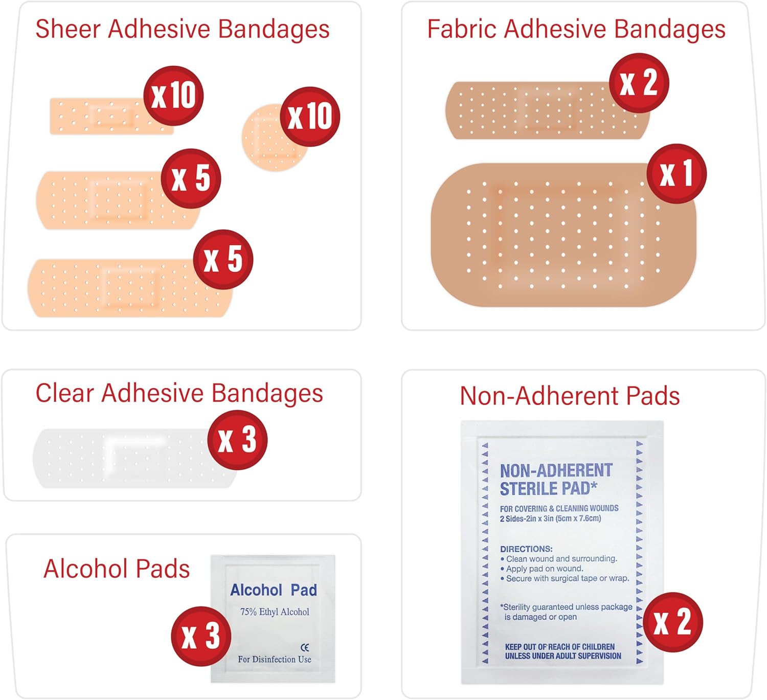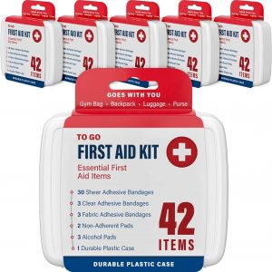 DecorRack 200 Piece First Aid Kit, 5 Individual Boxes of 42 Items Each, Emergency Kit to-go First Aid Kits for Minor Cuts, Scrapes, Travel, Car, Home, Work, Field Trips or Camping (200 pcs, 5 Pack)