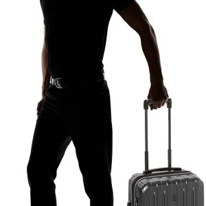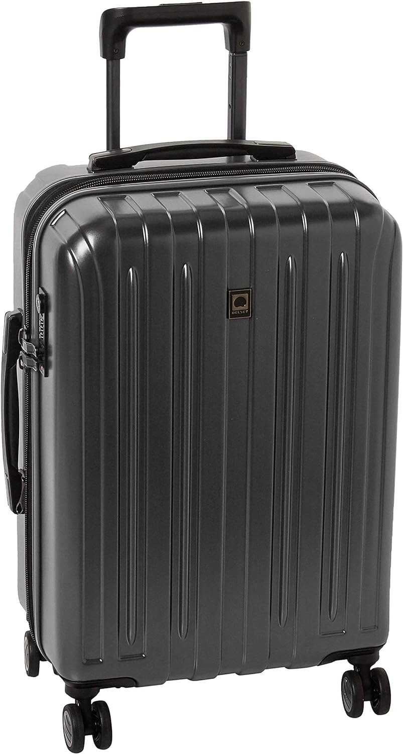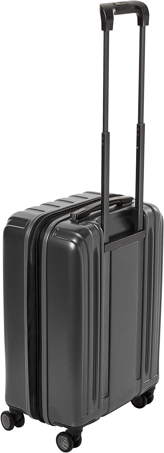 The Helium Titanium Collection from Delsey Paris is designed for the modern traveller. This lightweight and durable collection is made of 100% polycarbonate with a matte metallic finish to prevent against scratches. This 21 inch carry on is made to fit in the overhead bins of most domestic airlines. The bag expands up to 2 inches, is fully lined and offers two packing compartments with tie-down straps on one side and a zippered divider on the other to minimize shifting of contents. A zippered pcoket holds delicate items and accessories. The four double spinner wheels on this bag are ergonomically designed for a perfect roll with off center wheel axels to provide a wider and more stable base. The bag is easily carried with a dual locking trolley handle or by top and side carry handles for easy lifting. A TSA accepted lock is recessed into the side of the case to allow TSA agents to inspect the bag without damaging the lock. Worldwide Limited 10 Year Warranty.