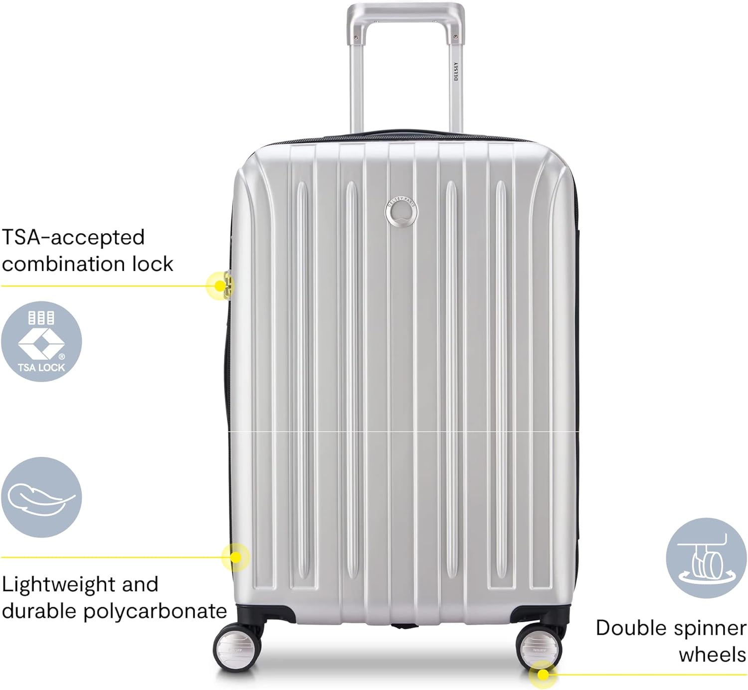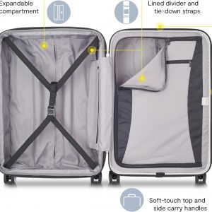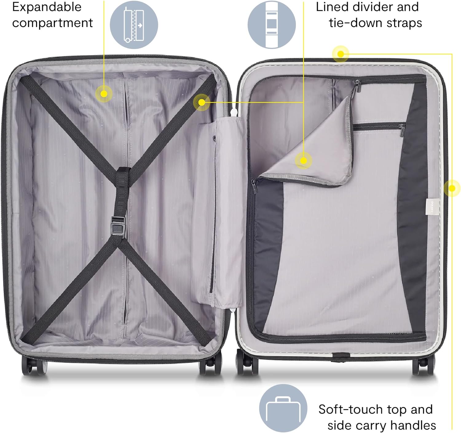 Quality and convenience in a sleek design, this spinner luggage is made to resist impact. Soft-touch handles and a scratch-resistant matte finish are the perfect touches to this expandable suitcase with two packing compartments with a zippered divider to conveniently pack your belongings. Established in 1946, Delsey has used its flair to marry tradition with innovation, elegance with modernity and design with practicality. We design tomorrow’s luggage with inspiration from many places: travelers and their journeys, societal changes and the evolving environment. As a result our luggage keeps getting lighter, better fitted and more environmentally friendly. Enabling our customers to travel elegantly and limiting any negative impact on the environment is our raison d’être.