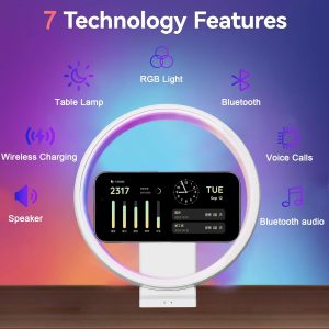4 in 1 WIRELESS CHARGER BLUETOOTH SPEAKER: Our product combines a Bluetooth speaker, night light, wireless charging station, and cell phone holder all in one. It features intuitive volume control, Bluetooth connectivity, and RGBW light mode switching, 4 brightness adjustments (40/60/80/100%) Ideal for adding color and music to any room.