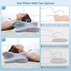 DONAMA Cervical Pillow for Neck and Shoulder,Contour Memory Foam Pillow,Ergonomic Neck Support Pillow for Side Back Stomach Sleepers with Pillowcase