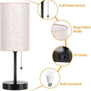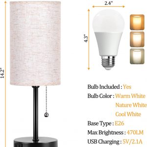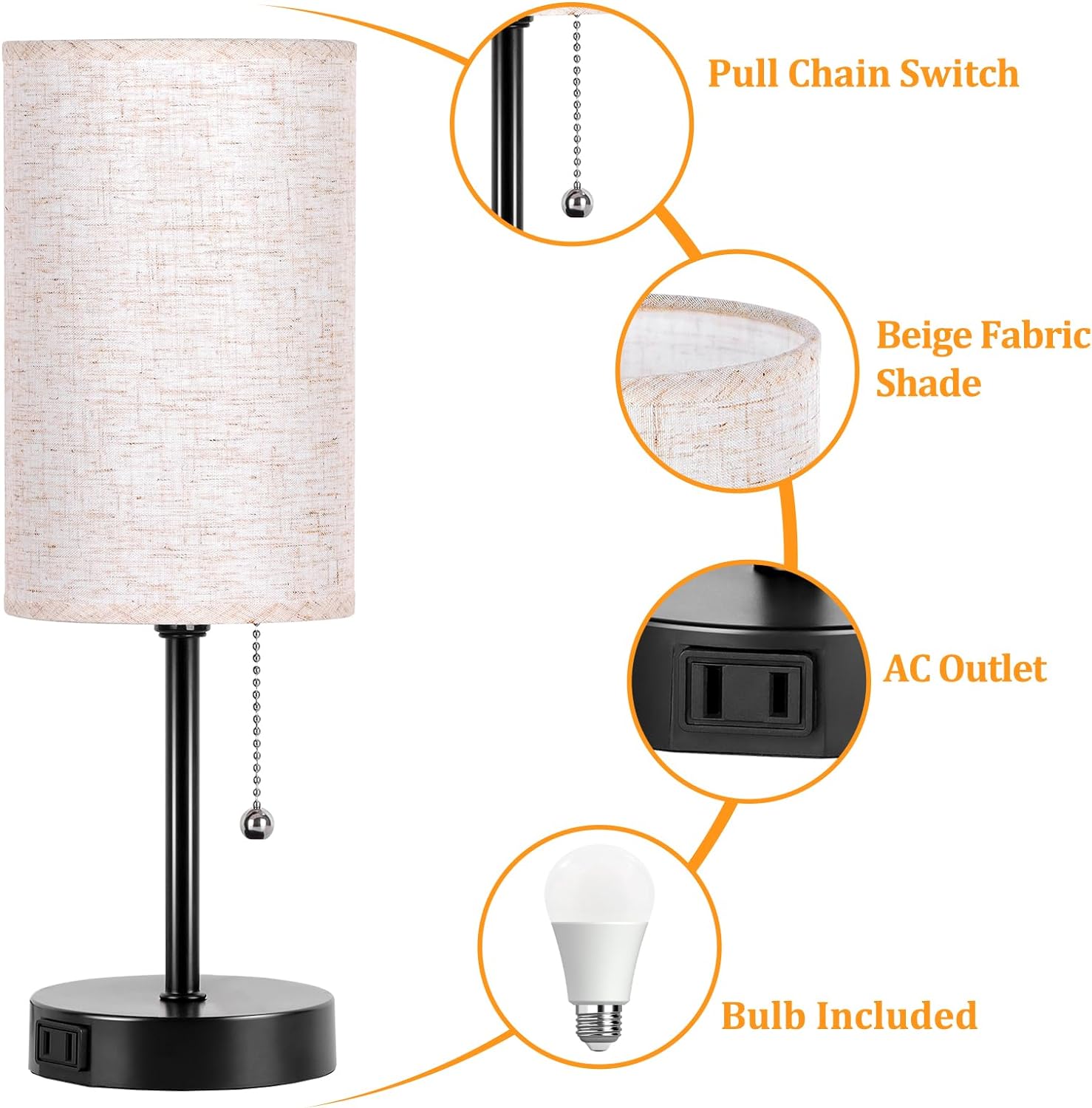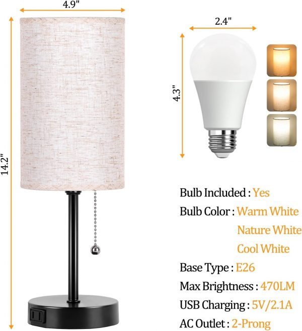 Dott Arts Table Lamp for Bedroom, 3-Color Bedside Lamps with Pull Chain, Bedroom Table Lamps for Nightstand,Small Lamp for Living Room, Bulb Included