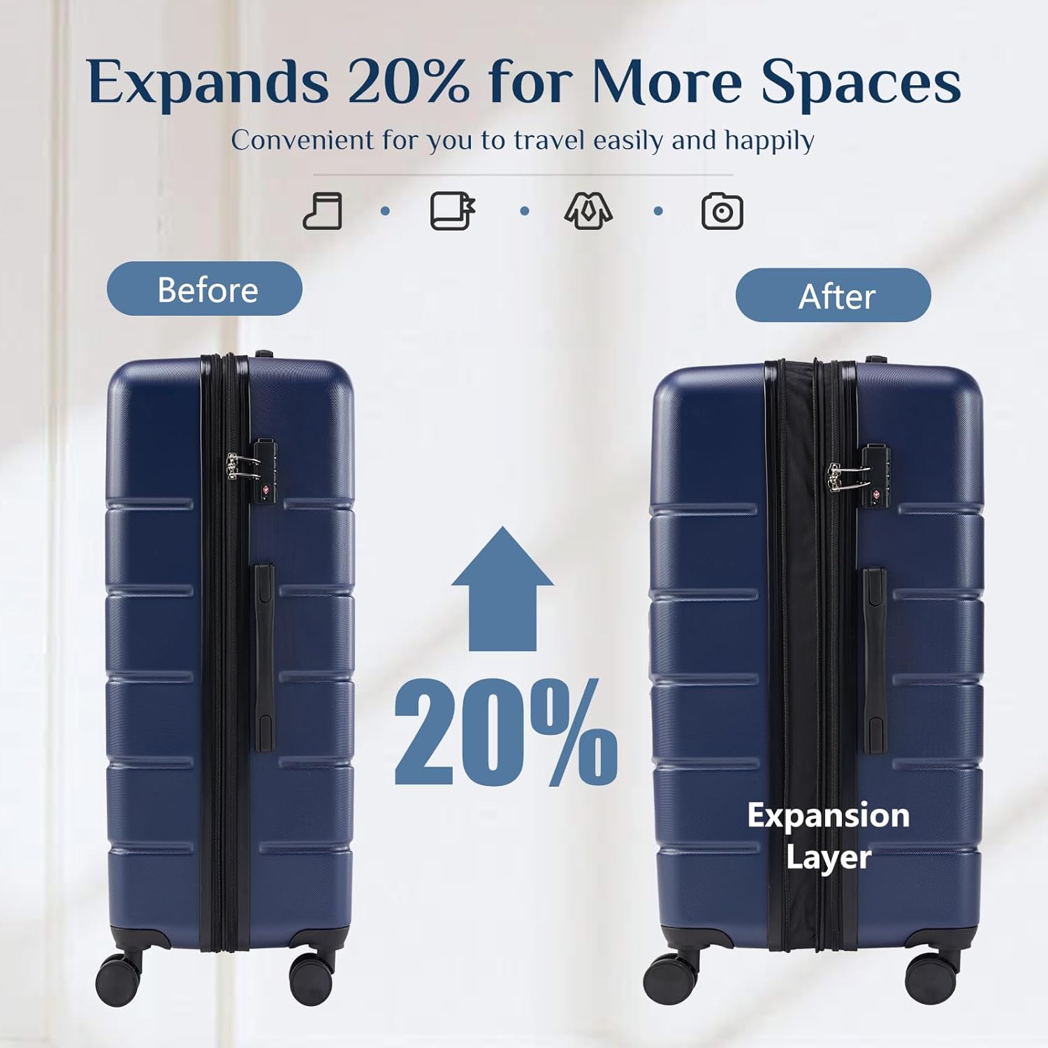 【Durable ABS Materials】The suitcase is made of more durable and lightweight high-quality ABS material, effectively adding a protective layer to the hard shell luggage, making it more impact-resistant.Our suitcase passed the drop test, the load-bearing test perfectly.