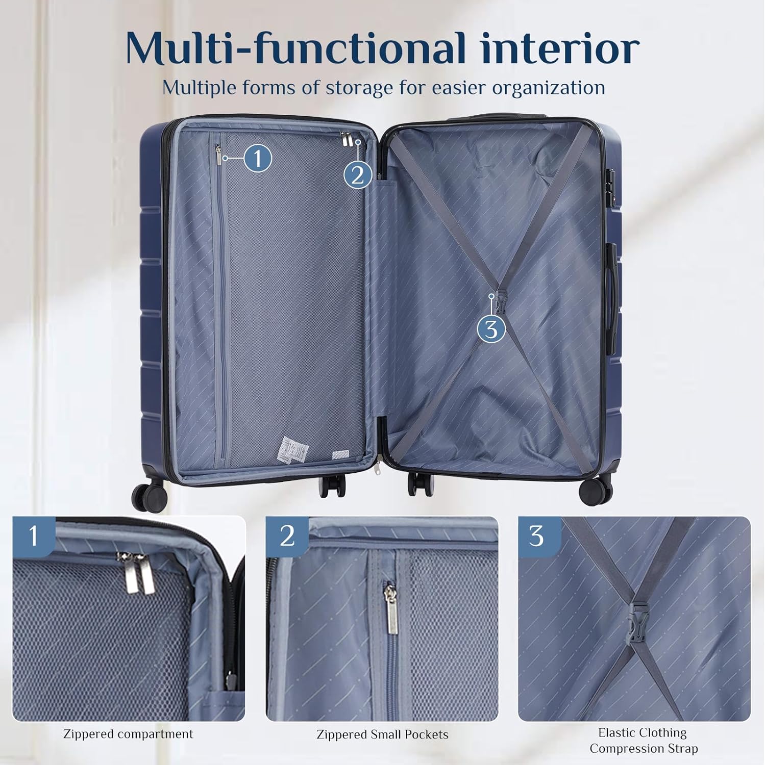 【Adequate Internal Space】The interior of suitcases with wheels features crossed fixing band and net pockets to keep your travel essentials and small valuables well organized.Low profile top and side handle provide for ease in handling,making your trip happy and worry-free.