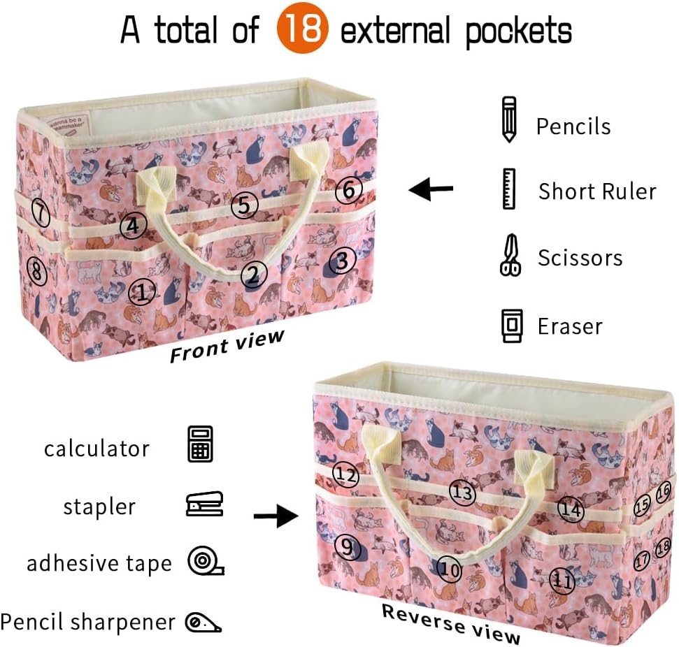 【Storage Pockets】:This craft tote bag is outside designed with 18 pockets to neatly store and organise all your essentials. The open pockets give you quick access to frequently used items.