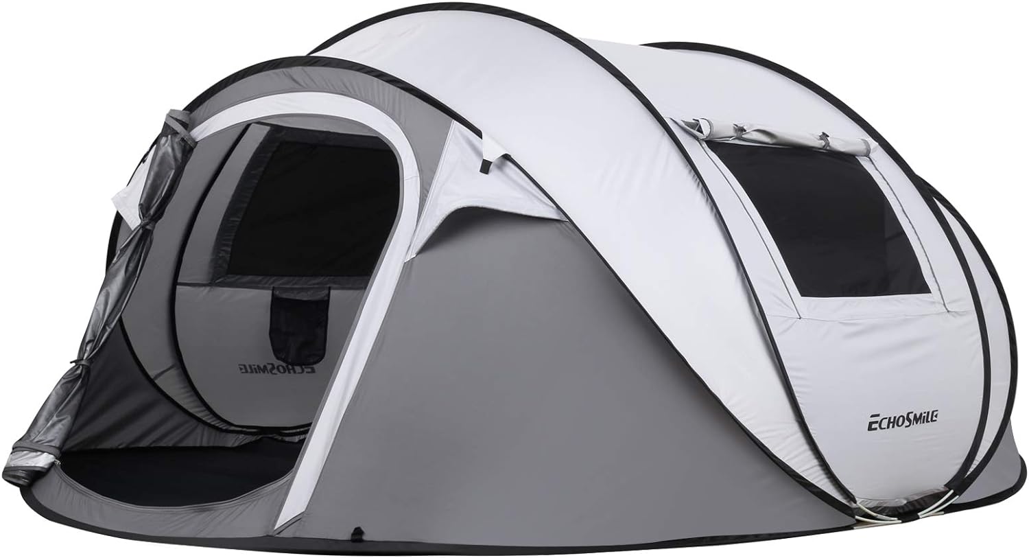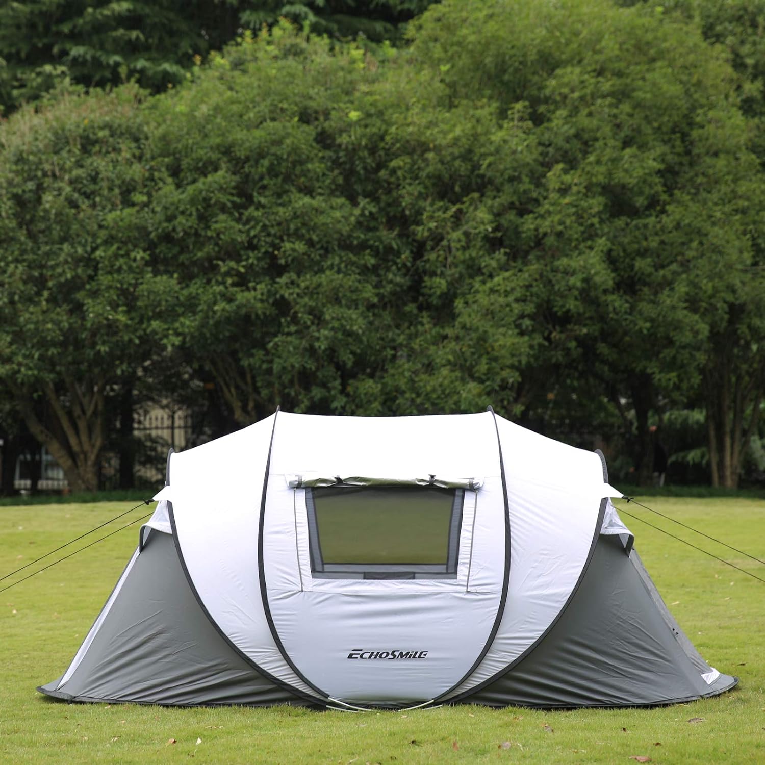 Welcome to EchoSmile, where outdoor adventures meet unparalleled comfort and convenience! Our pop up tents redefines camping experiences, offering the perfect harmony of durability, portability, and functionality. Seam-sealed rainflies and 210D Oxford Cloth floors provide unbeatable rain resistance, while robust fiberglass poles and stakes keep your shelter steadfast in gusty conditions. Our innovative self-pop design ensures the tent springs to life within 10 seconds, allowing you to spend less time setting up and more time reveling in nature’s wonders! No matter your camping group size, EchoSmile has you covered. Choose from our range of 2-person, 4-person, and 6-person tents, ensuring ample space for everyone to unwind after a day of exploration. Order now and embark on your next adventure with EchoSmile by your side!