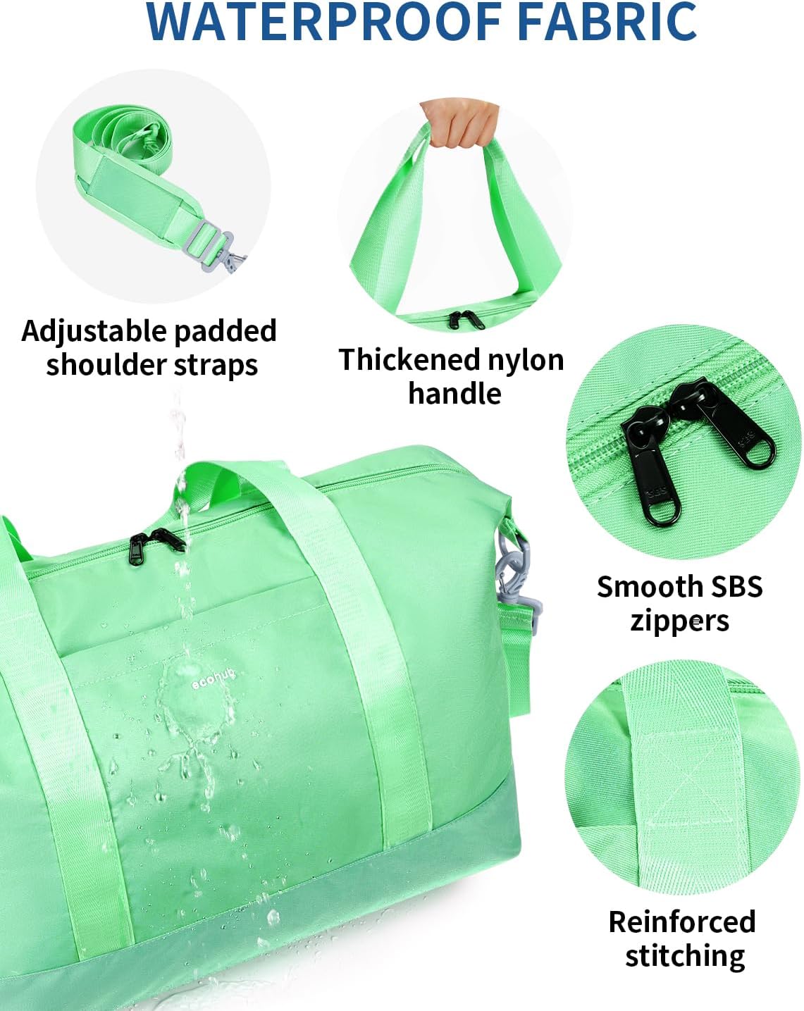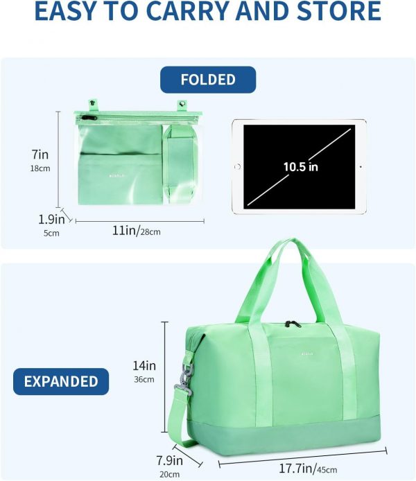 【SPACIOUS WITH REMOVABLE WET POCKET】: The ECOHUB weekender bag features a 30L spacious main compartment and an exterior zipper pocket for quick security checks. It includes a detachable wet bag for packing toiletries or wet items. The bag is leak-proof and easy to clean, ensuring your belongings stay dry. Additionally, you can fold the duffel bag into the wet bag for easy carrying