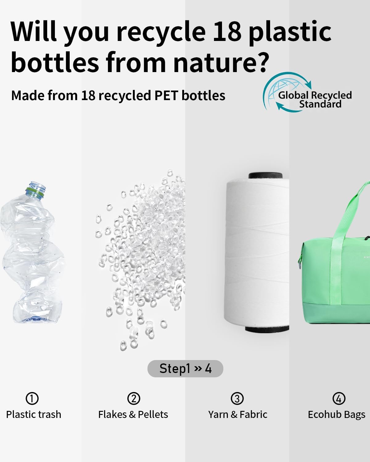 【SUSTAINABLE AND GUARANTEED】: ECOHUB foldie travel bags are 100% eco-friendly as they’re crafted from 18 recycled PET bottles! The water-resistant fabric is certified by GRS. Additionally, they’re equipped with Heavy Duty SBS brand zippers and reinforced ripstop stitching for durability. ECOHUB travel bags guarantee top quality. If you have any concerns or suggestions about our products, please let us know through your order. (PATENT PENDING)