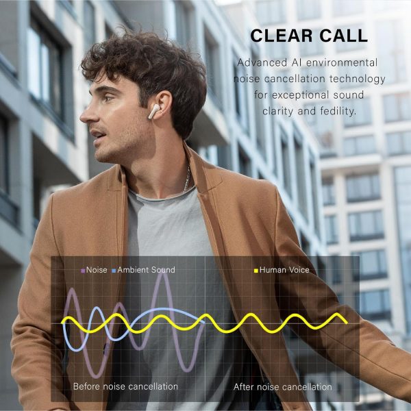 Crystal Clear Live Calls: Thanks to the AI smart environmental noise cancellation technology in these wireless earbuds, you can catch every detail in the voice of the person you’re conversing with.