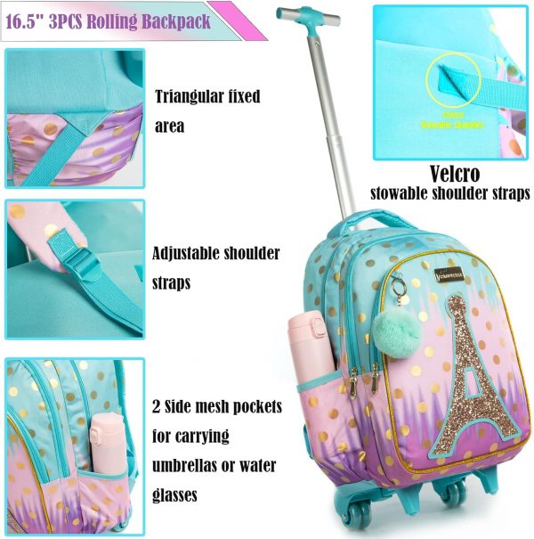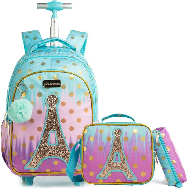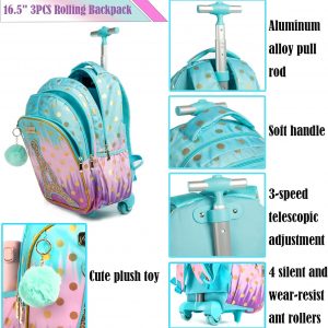 17″ 3PCS Girls’ Rolling Schoolbag Set contains.