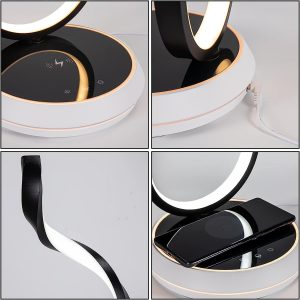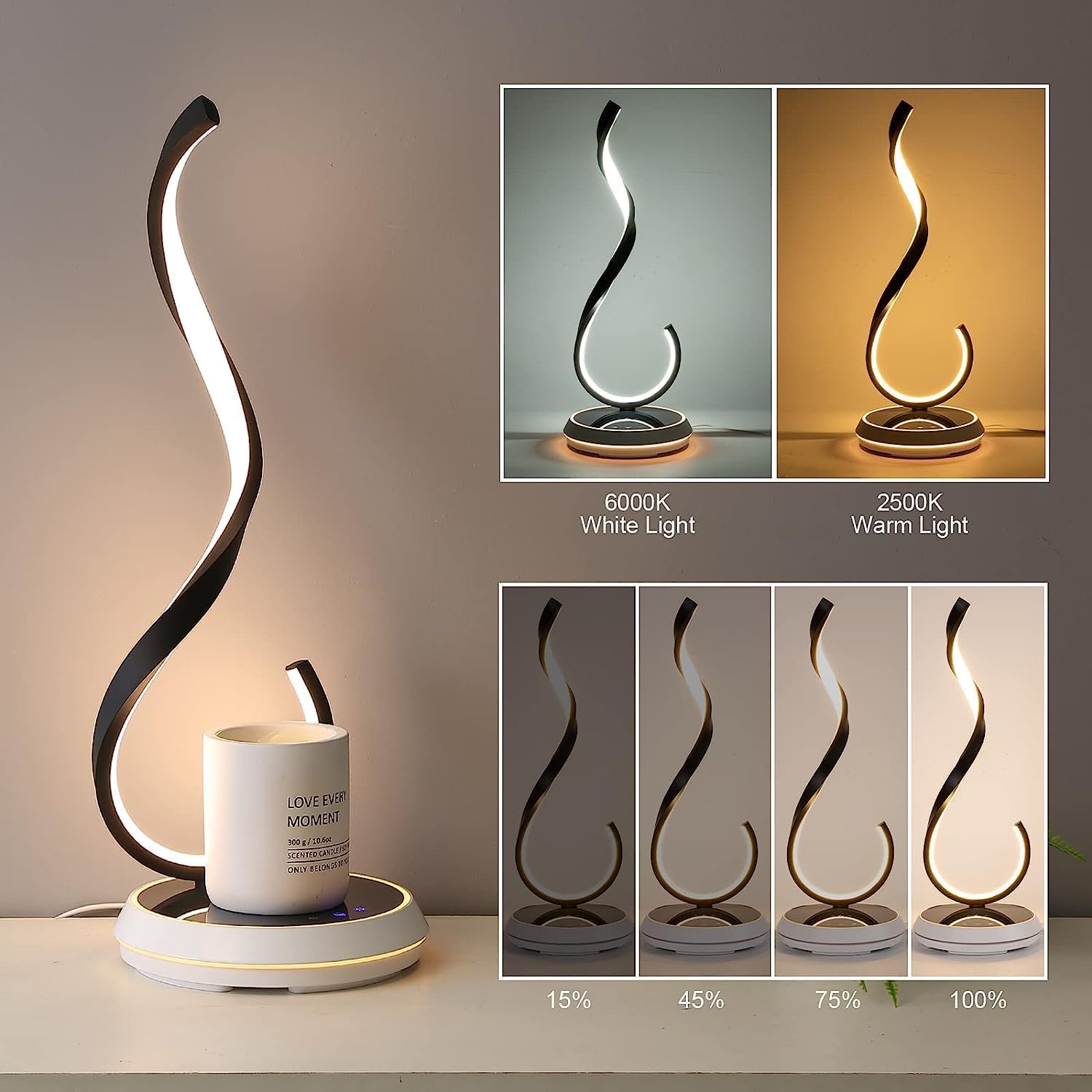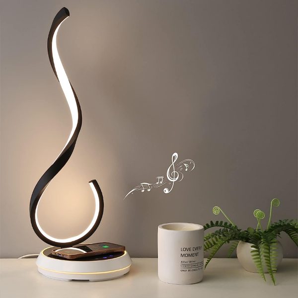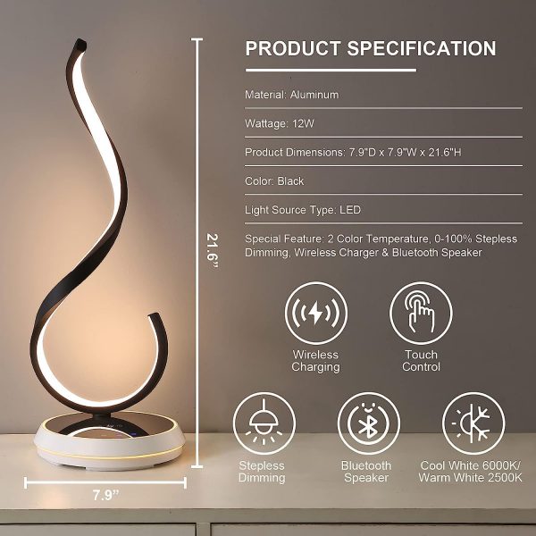 EIDEARAY Bedside Table LED Night Light with Wireless Charger and Bluetooth Speaker, Touch Control Stepless Dimmable Spiral Table Lamps for Bedroom,Great Birthday Gifts for Girlfriend, Women, Mom, Men