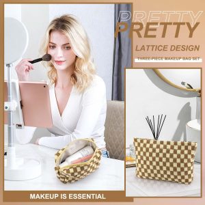 The aesthetic makeup bag features with distinctive checkered pattern design and popular color matching, ideal for carrying and using on travel, work, shopping and other occasions