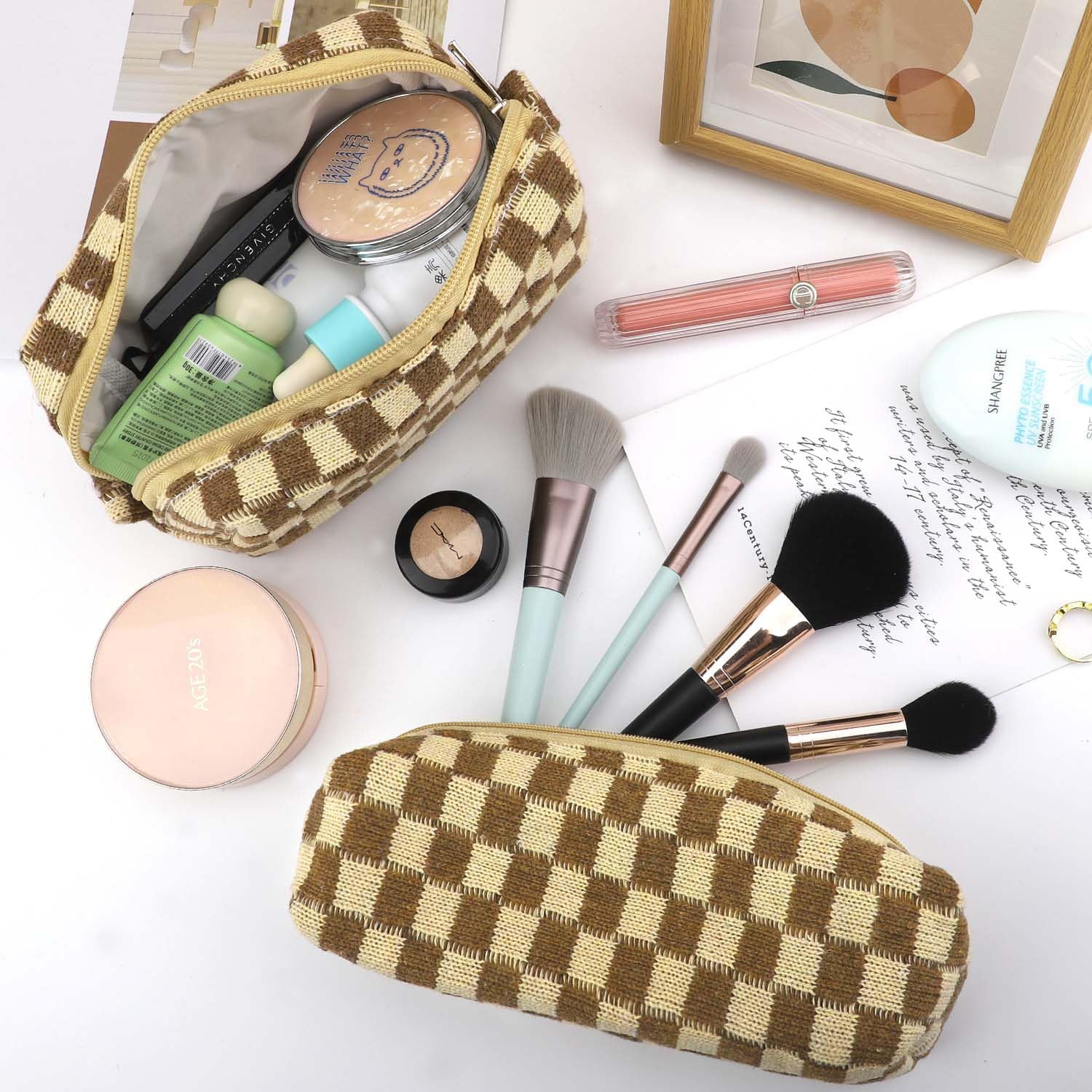 You can use the checkered cosmetic bag as cute cosmetic bag, makeup pouches, travel pouch, makeup bag travel, beauty bag, makeup and toiletry travel bag set