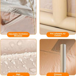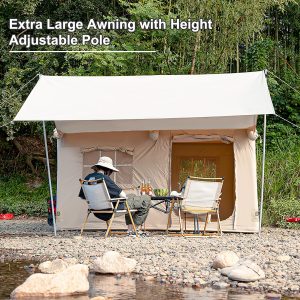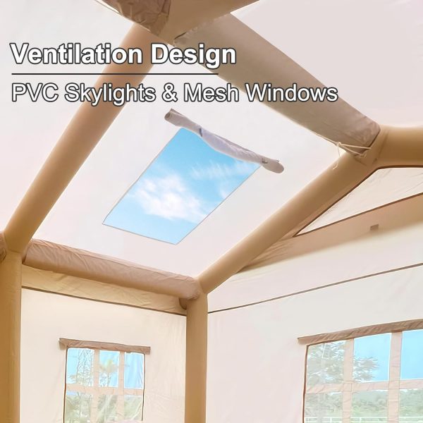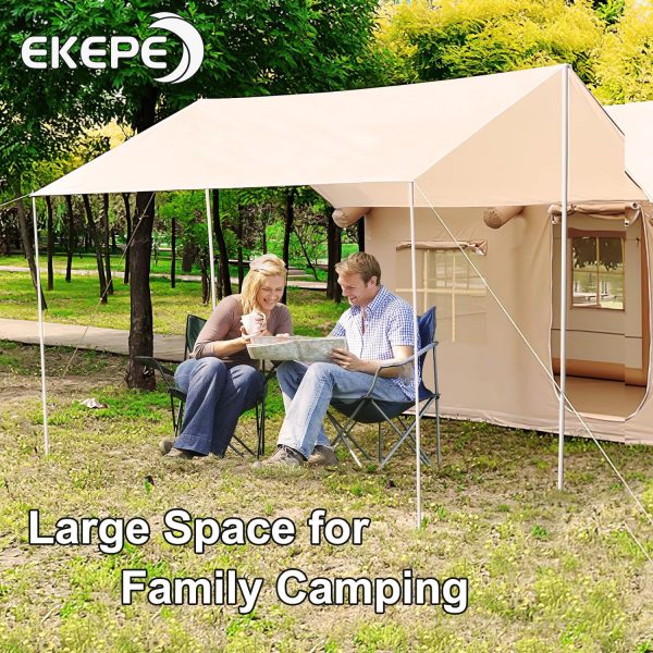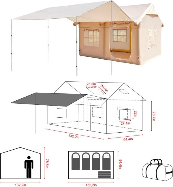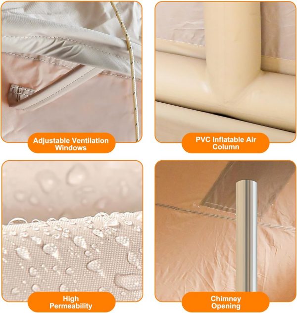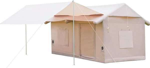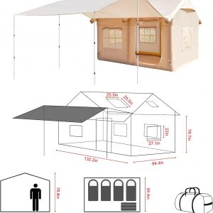 EKEPE Inflatable Camping Tent with Awning-Style Curtain and Skylight, Large Blow Up Tent, Easy Setup 4 Season Waterproof Glamping Tent with Chimney Opening, 6 Person Family Tent for Camping,Outdoor